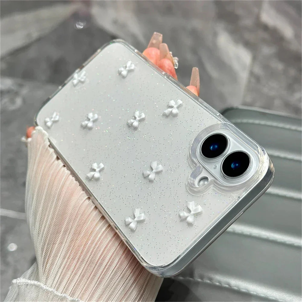 Cute 3D Bowknot Glitter Case For iPhone 16 15 13 11 Pro Max 14 Plus 12 MiNi X XS XR 7 8 SE2 2025 Korean Girl Epoxy Clear Shell